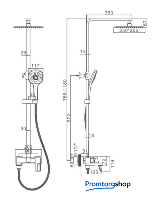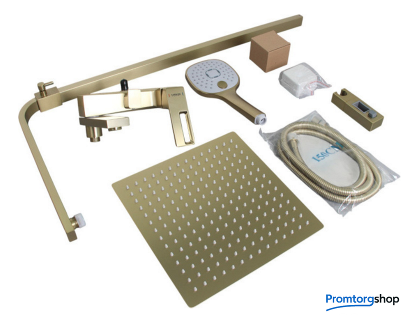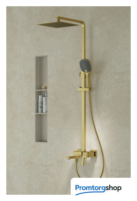 Тип | душевая система (с верхним душем). Особенности: Регулируемая высота штанги душевой системы. Стильный дизайн, ручка. Встроенный в излив переключатель. Кнопочный переключатель на ручной лейке. |