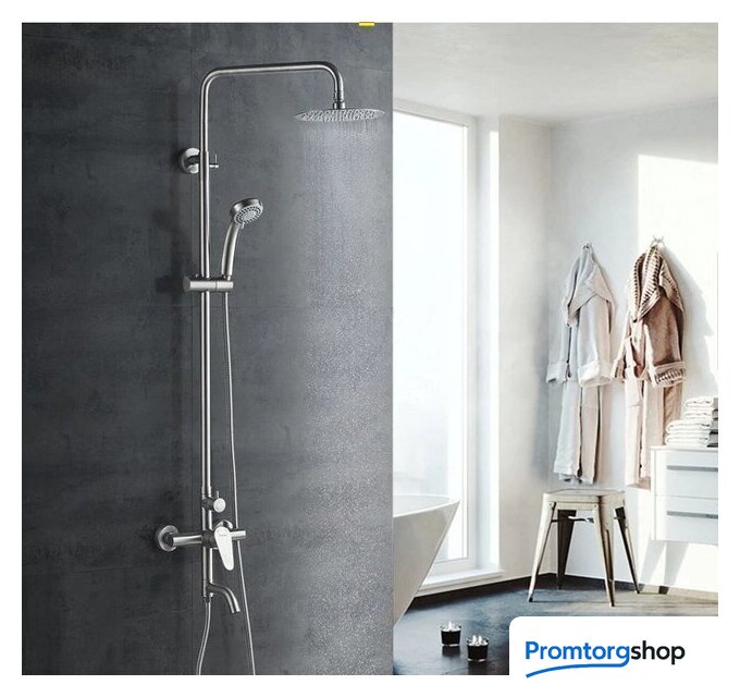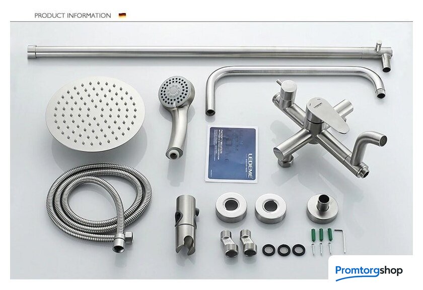 Комплектация | верхний душ, штанга, ручной душ (лейка), держатель лейки, шланг, смеситель |