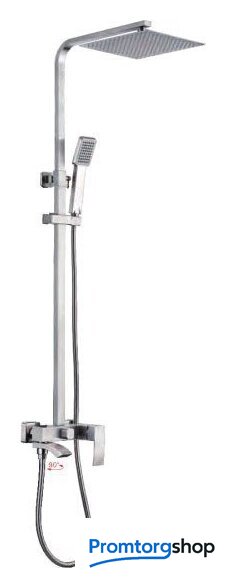 Комплектация | верхний душ, штанга, ручной душ (лейка), держатель лейки, шланг, смеситель, излив для ванны |