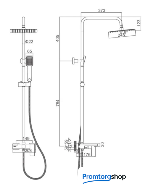 | Диаметр (ширина) верхнего душа | 248x248 мм |
