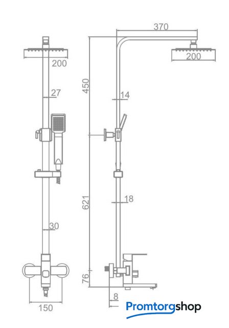 | Диаметр (ширина) верхнего душа | 200 мм |