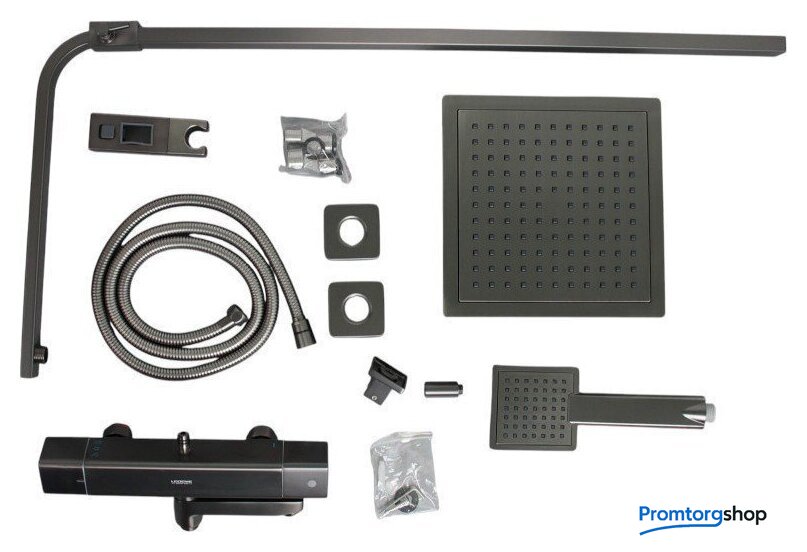 | Комплектация | верхний душ, штанга, ручной душ (лейка), держатель лейки, шланг, смеситель, излив для ванны |