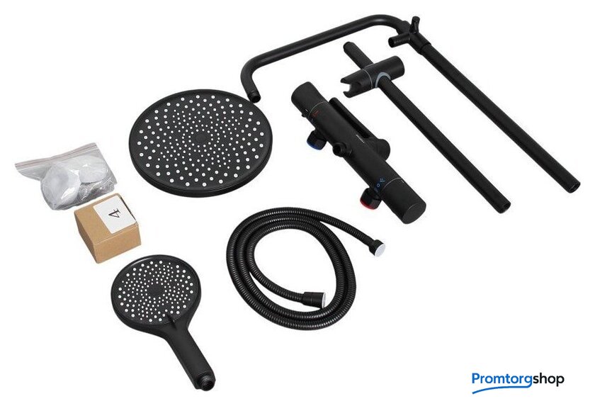 | Комплектация | верхний душ, штанга, ручной душ (лейка), держатель лейки, шланг, смеситель, излив для ванны |