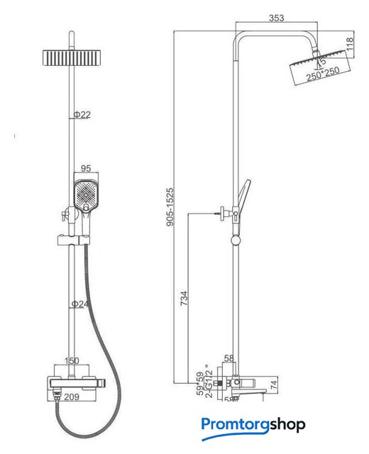 | Диаметр (ширина) верхнего душа | 250 мм |