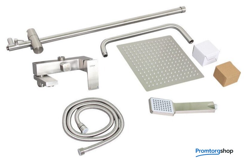 | Комплектация | верхний душ, штанга, ручной душ (лейка), держатель лейки, шланг, смеситель |