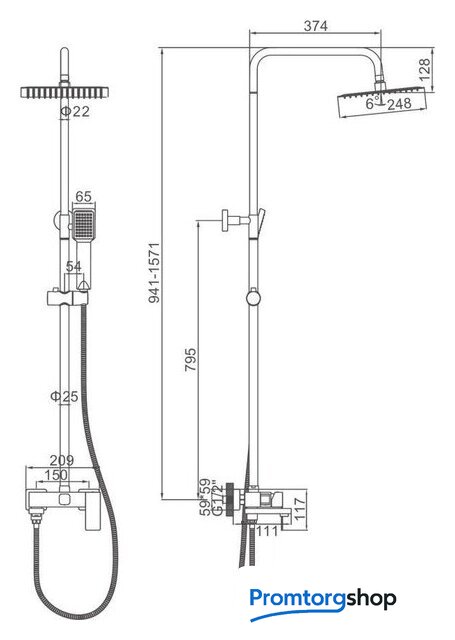 | Тип | душевая система (с верхним душем) |