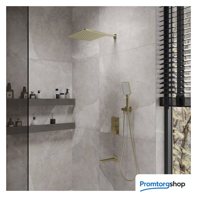 | Комплектация | верхний душ, ручной душ (лейка), держатель лейки, шланг, смеситель, излив для ванны |
