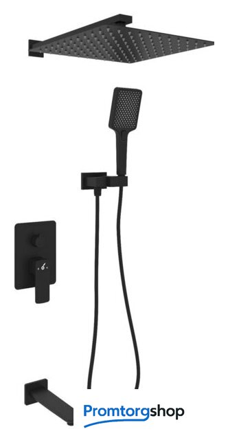 | Комплектация | верхний душ, ручной душ (лейка), держатель лейки, шланг, смеситель, излив для ванны |