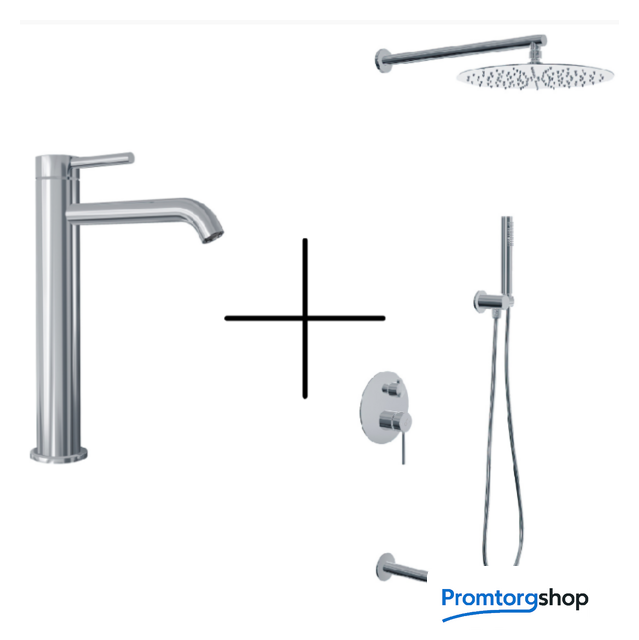 | Тип | Комплект из душевой системы и смесителя для умывальника. Душевая система (с верхним душем) встроенный + однорычажный смеситель для умывальника, монтаж на столешницу или умывальник |