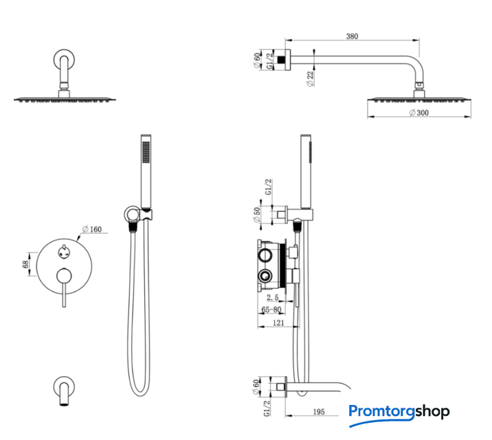 | Диаметр (ширина) верхнего душа | 300*300 мм |