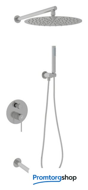 | Комплектация | верхний душ, ручной душ (лейка), держатель лейки, шланг, смеситель, излив для ванны |