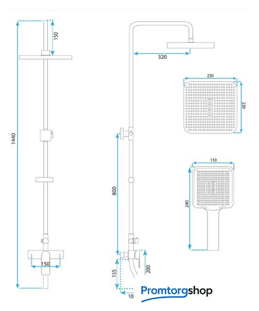 | Диаметр (ширина) верхнего душа | 230*230 мм |