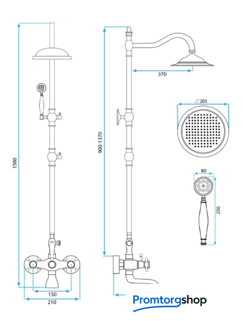 | Диаметр (ширина) верхнего душа | 205*205 мм |