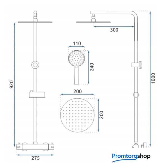 | Диаметр (ширина) верхнего душа | 200*200 мм |