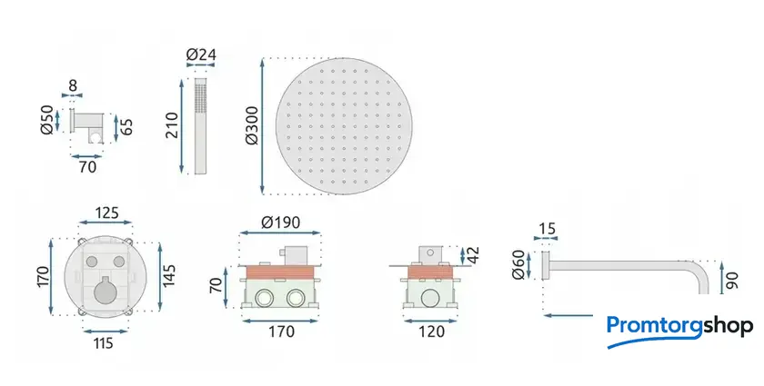 Диаметр (ширина) ручного душа | 24 мм ( 210x24 ) |