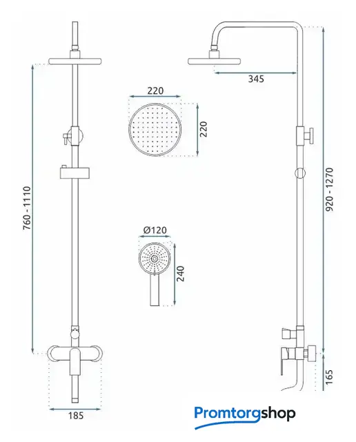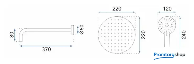 | Диаметр (ширина) верхнего душа | 220 мм |