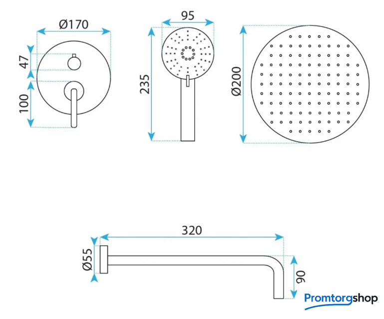 | Диаметр (ширина) ручного душа | 9.5*23.5 см |