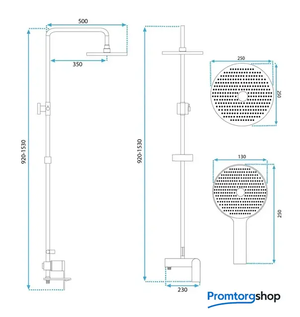 | Диаметр (ширина) верхнего душа | 250 мм |