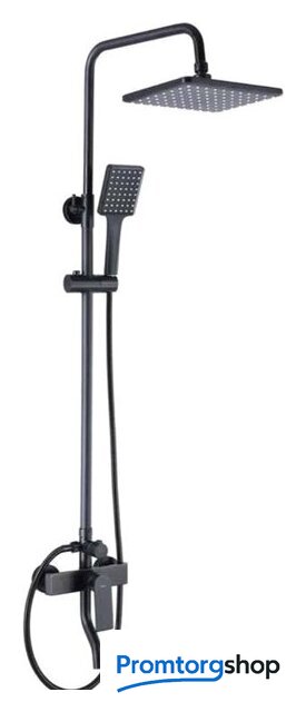 Комплектация | верхний душ, штанга, ручной душ (лейка), держатель лейки, шланг, смеситель, излив для ванны |