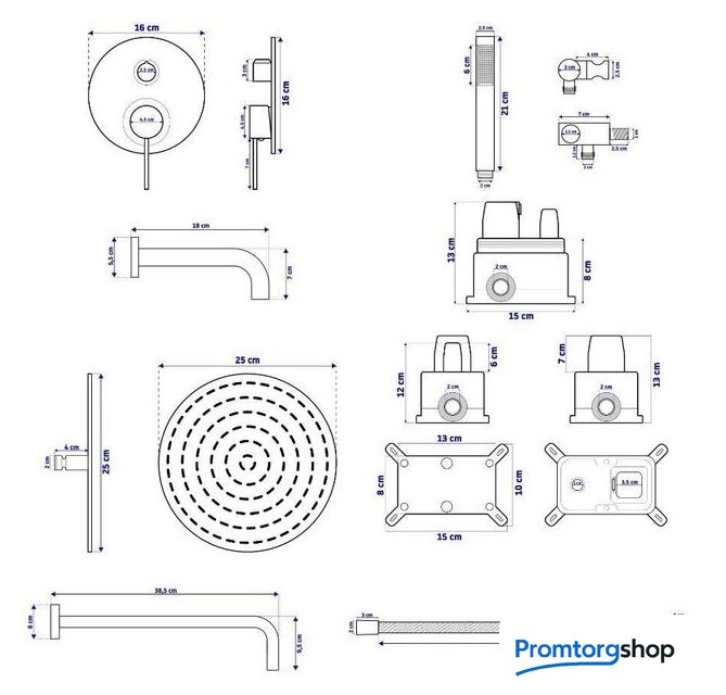 Диаметр (ширина) верхнего душа | 250 мм |