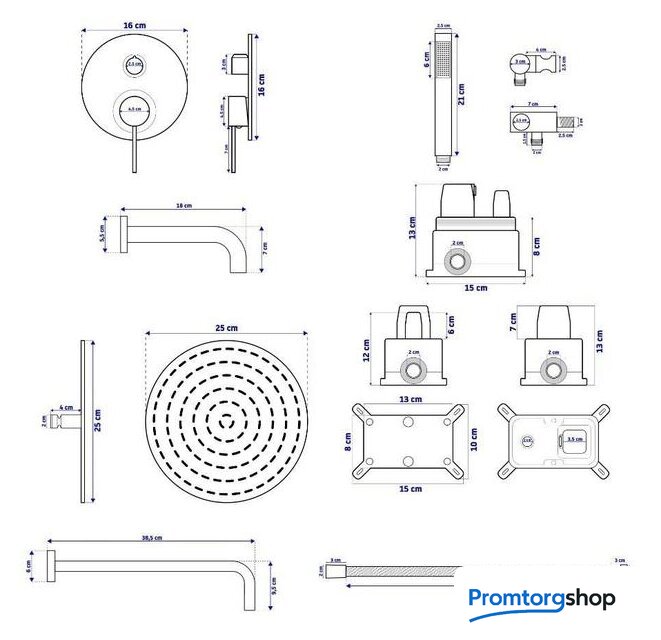 Диаметр (ширина) верхнего душа | 250 мм |