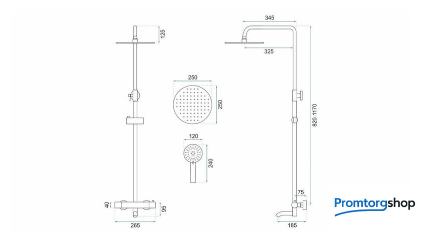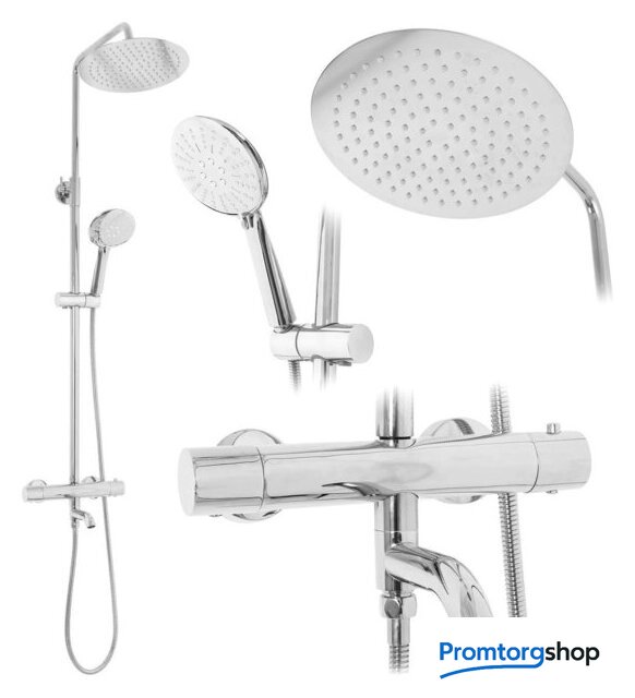 Комплектация | верхний душ, штанга, ручной душ (лейка), держатель лейки, шланг, смеситель, излив для ванны |