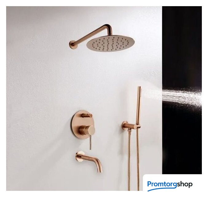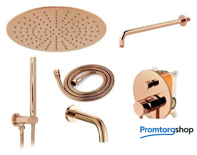 Комплектация | верхний душ, ручной душ (лейка), держатель лейки, шланг, смеситель, излив для ванны |