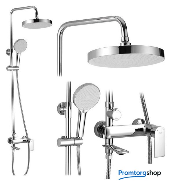 | Комплектация | верхний душ, штанга, ручной душ (лейка), держатель лейки, шланг, смеситель, излив для ванны |