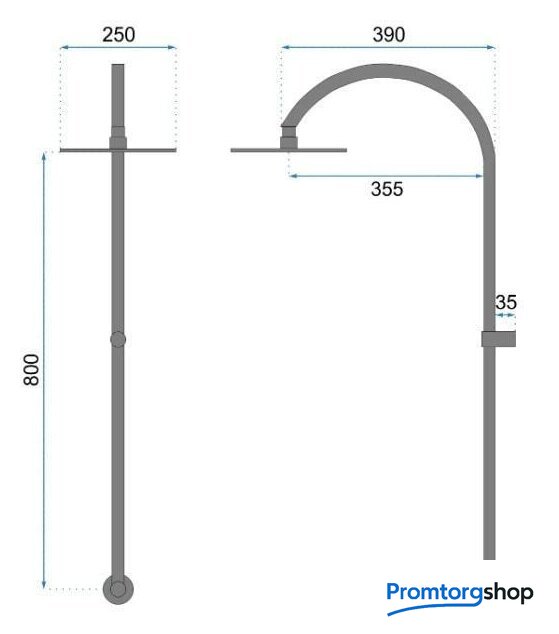 | Диаметр (ширина) верхнего душа | 250 мм |
