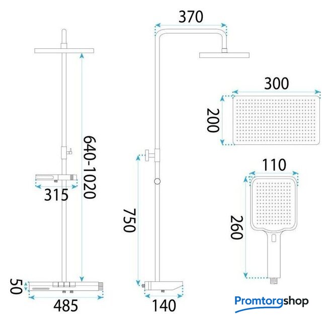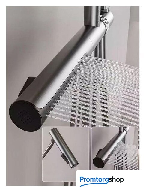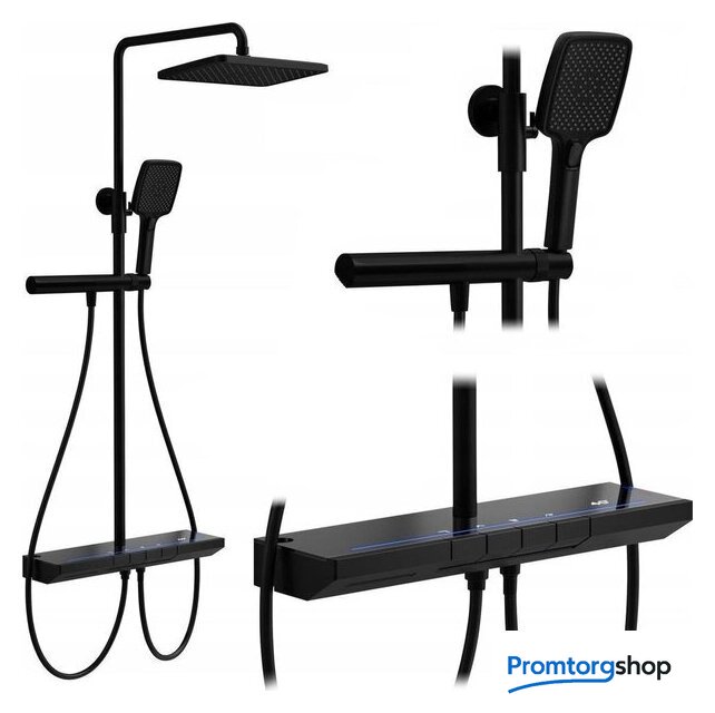 | Комплектация | верхний душ, штанга, ручной душ (лейка), держатель лейки, шланг, смеситель, излив для ванны, освещение (подсветка) |