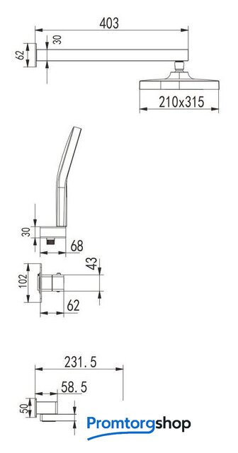 | Диаметр (ширина) верхнего душа | 315 мм |