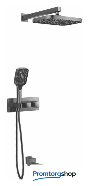 | Комплектация | верхний душ, ручной душ (лейка), держатель лейки, шланг, смеситель, излив для ванны |