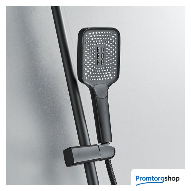 Комплектация | верхний душ, штанга, ручной душ (лейка), держатель лейки, шланг, смеситель, излив для ванны |