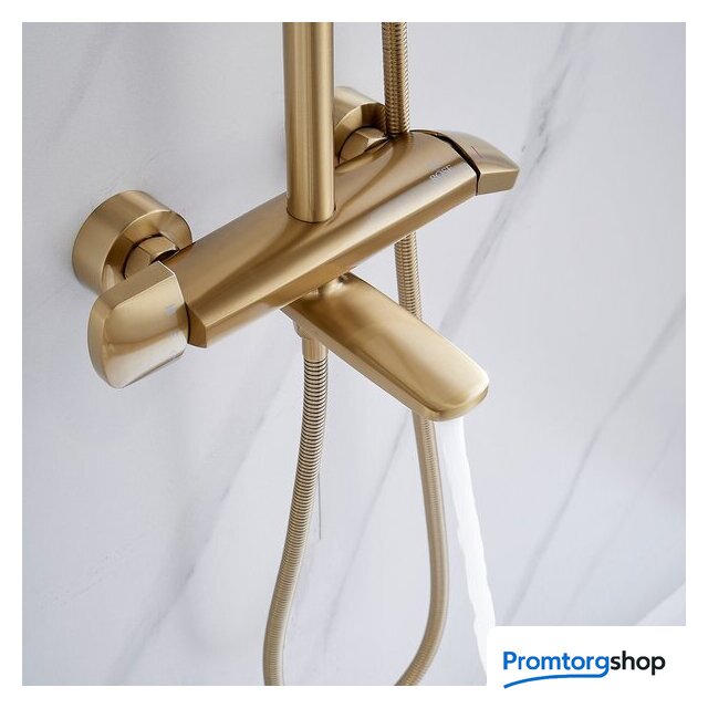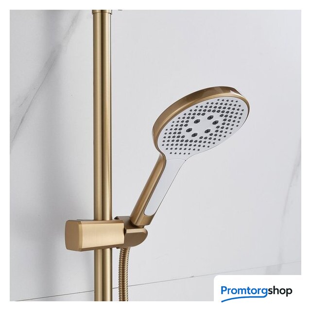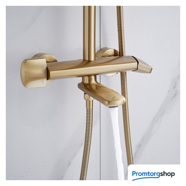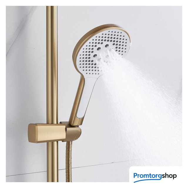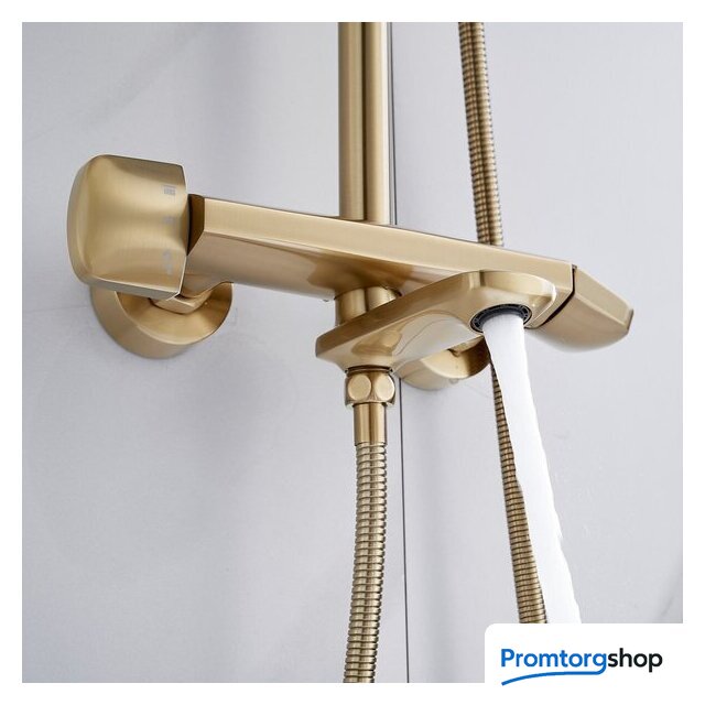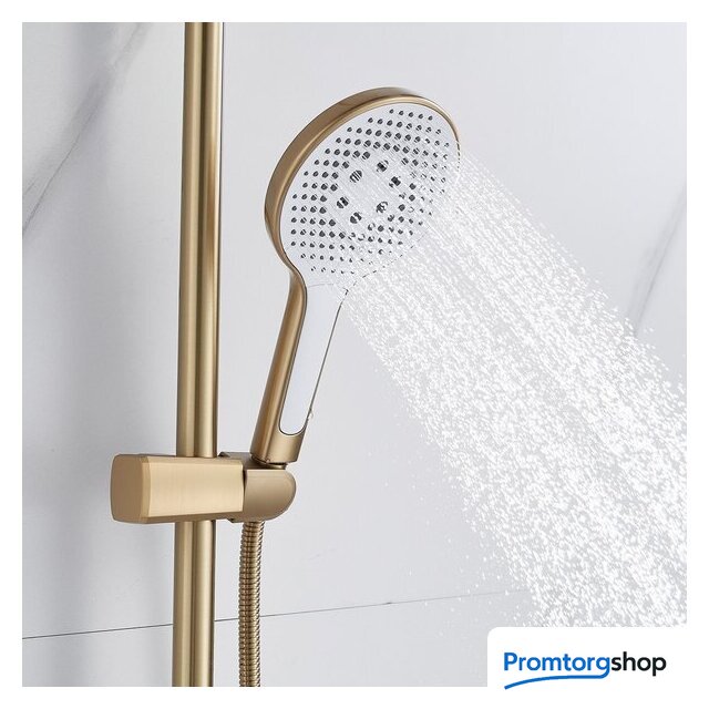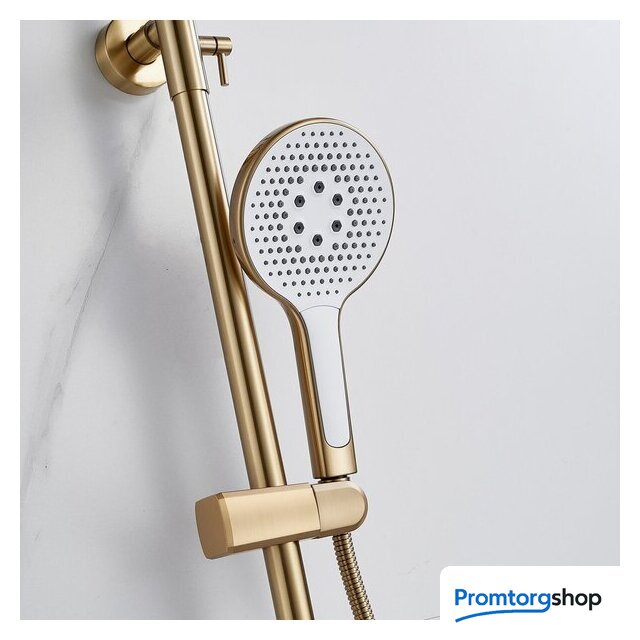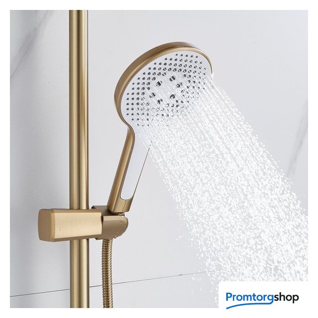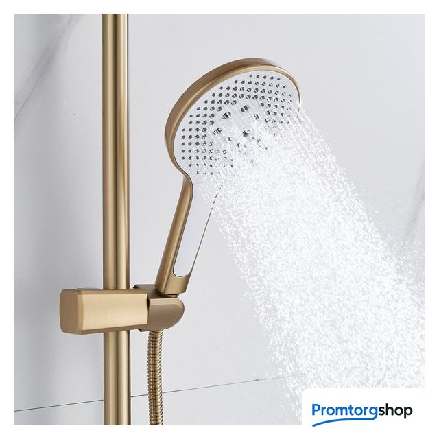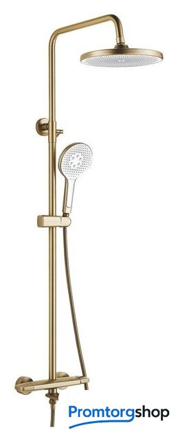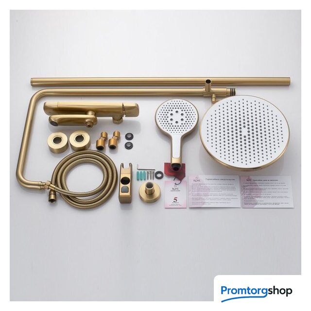 Комплектация | верхний душ, штанга, ручной душ (лейка), держатель лейки, шланг, смеситель, излив для ванны |