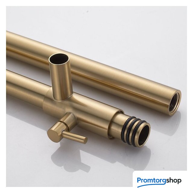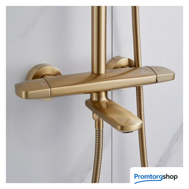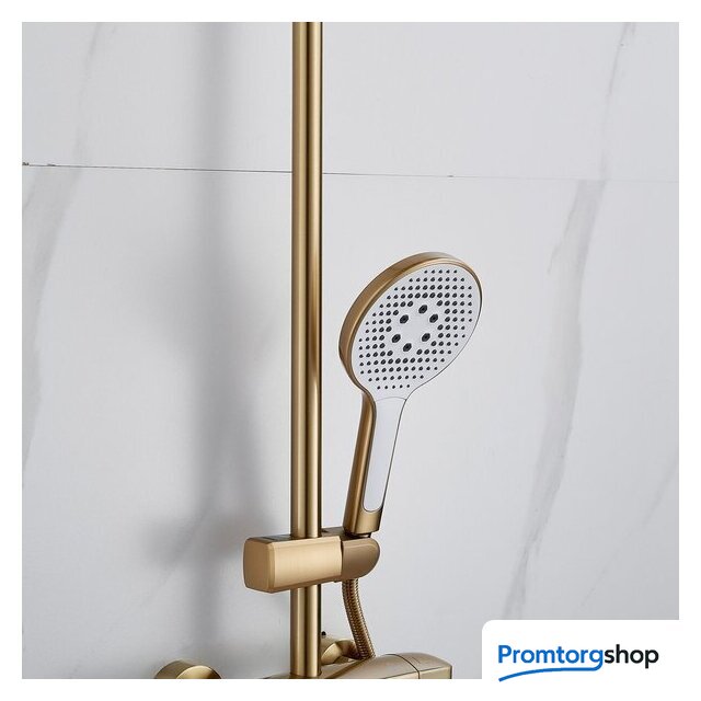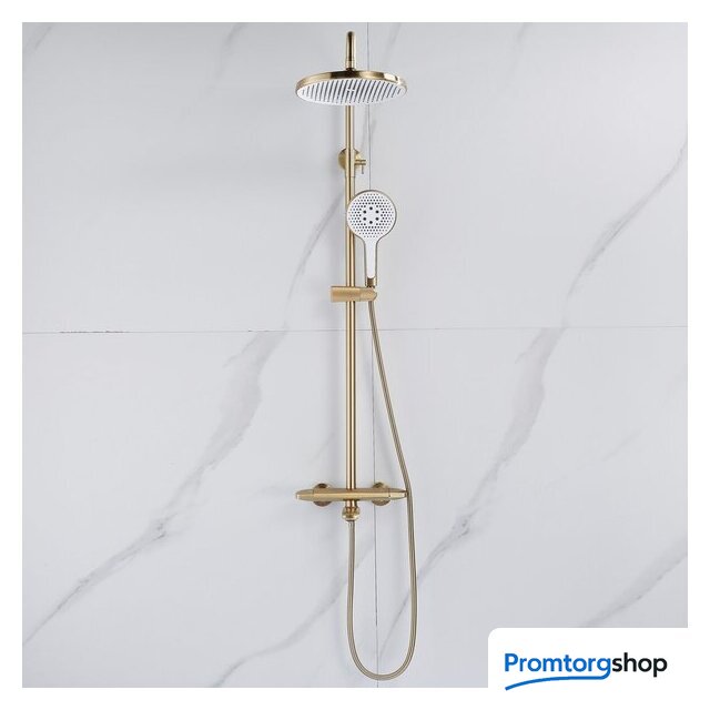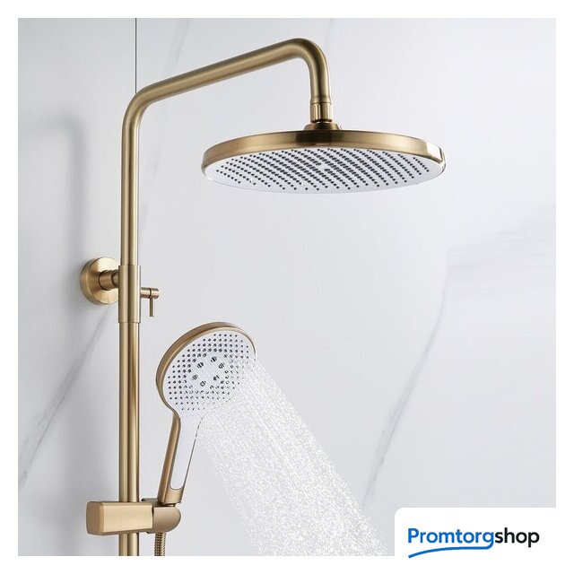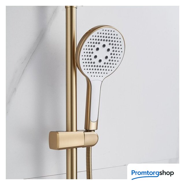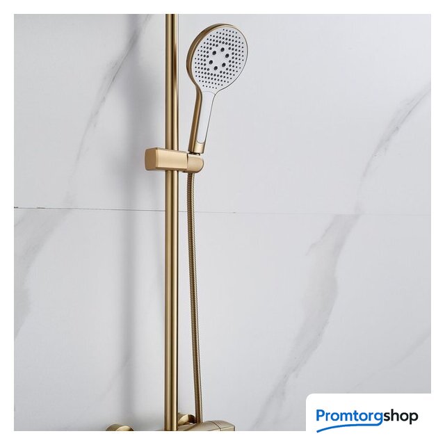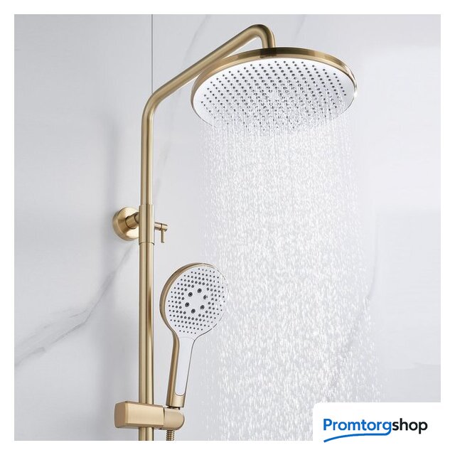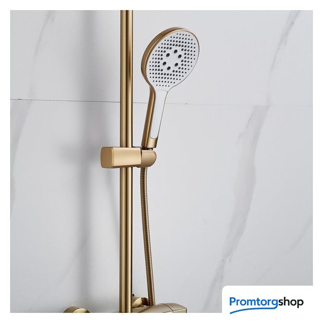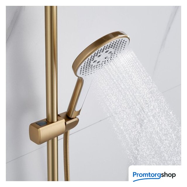 Комплектация | верхний душ, штанга, ручной душ (лейка), держатель лейки, шланг, смеситель, излив для ванны |