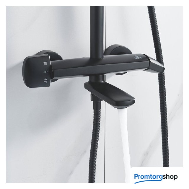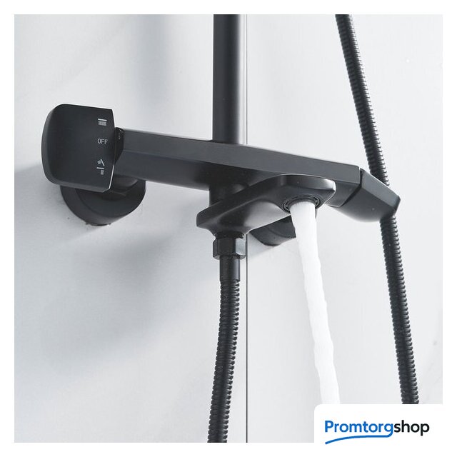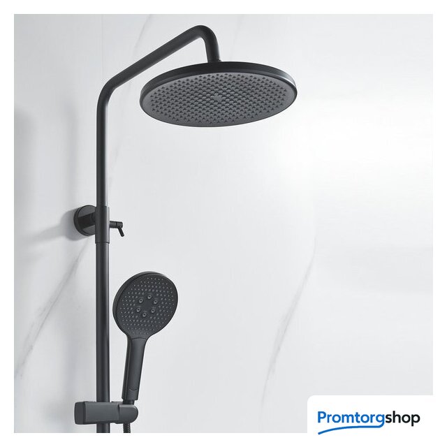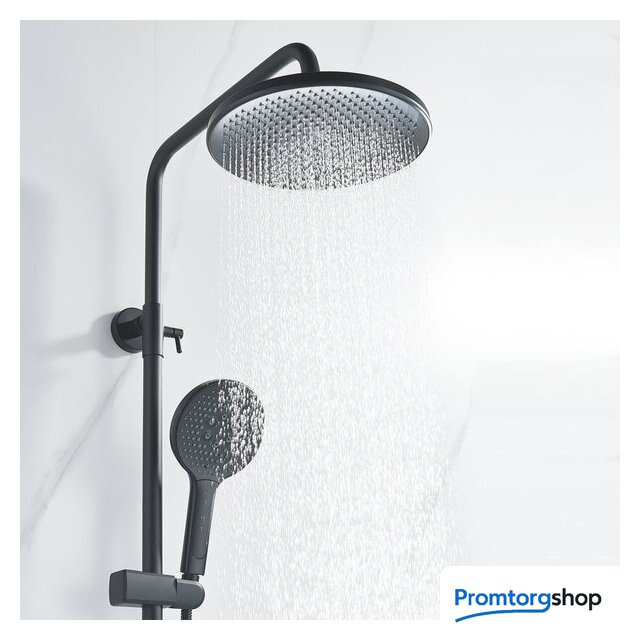 Комплектация | верхний душ, штанга, ручной душ (лейка), держатель лейки, шланг, смеситель, излив для ванны |