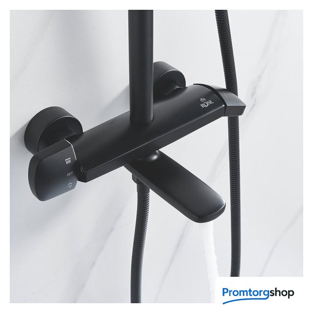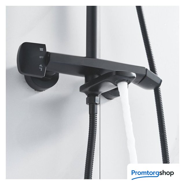 | Комплектация | верхний душ, штанга, ручной душ (лейка), держатель лейки, шланг, смеситель, излив для ванны |