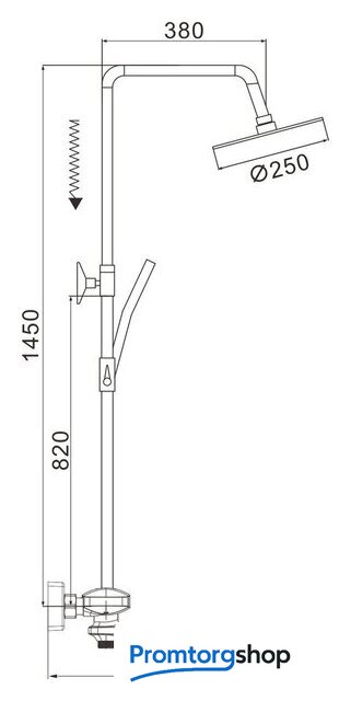 | Диаметр (ширина) верхнего душа | 250 мм |