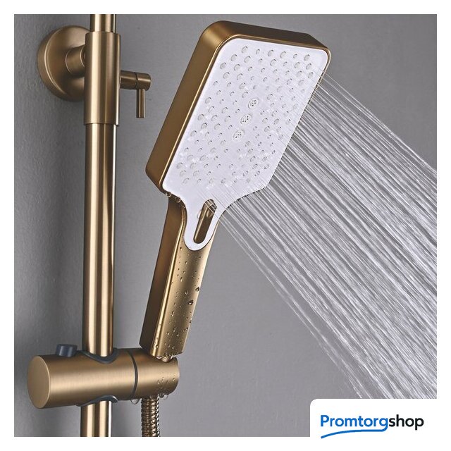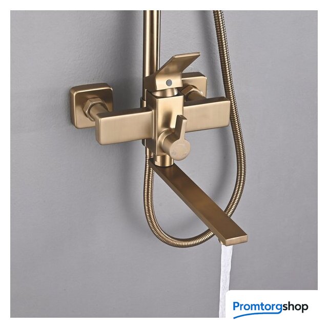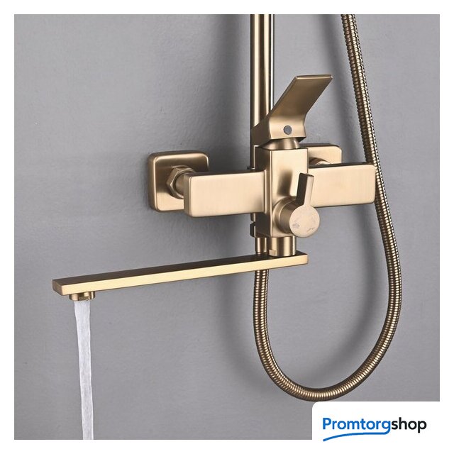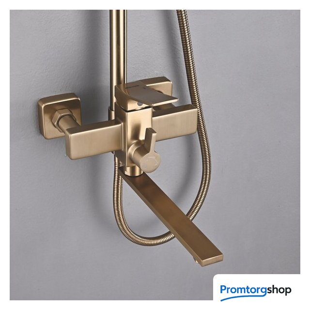 | Комплектация | верхний душ, штанга, ручной душ (лейка), держатель лейки, шланг, смеситель, излив для ванны |