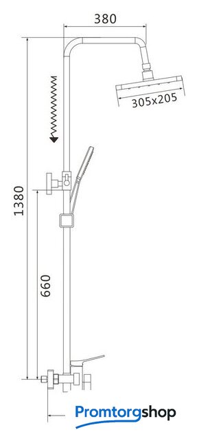 | Диаметр (ширина) верхнего душа | 305 мм |