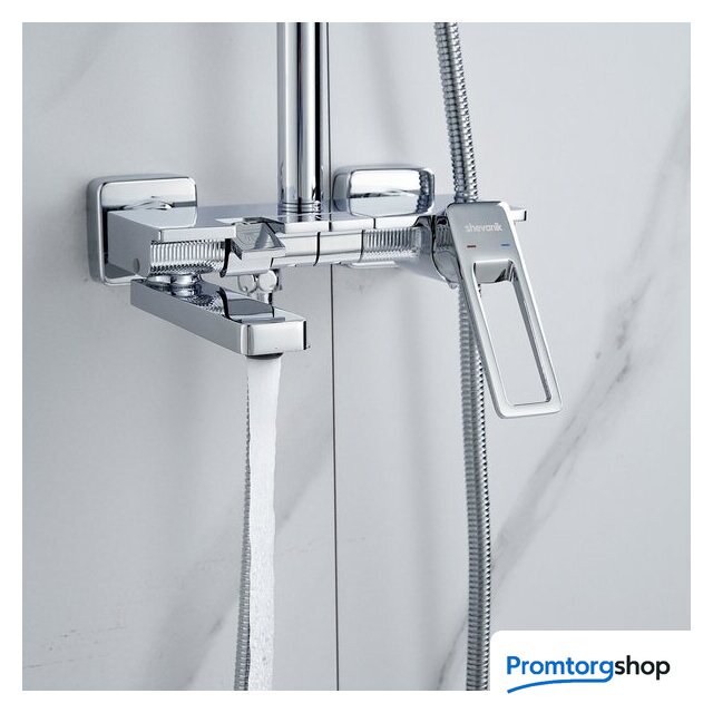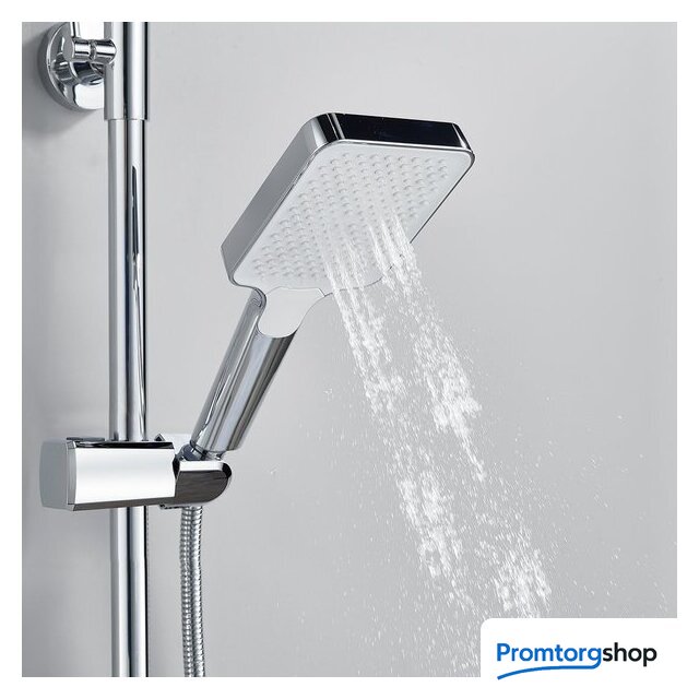 Комплектация | верхний душ, штанга, ручной душ (лейка), держатель лейки, шланг, смеситель, излив для ванны |