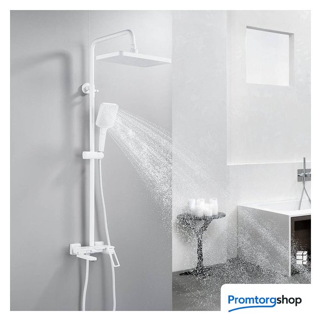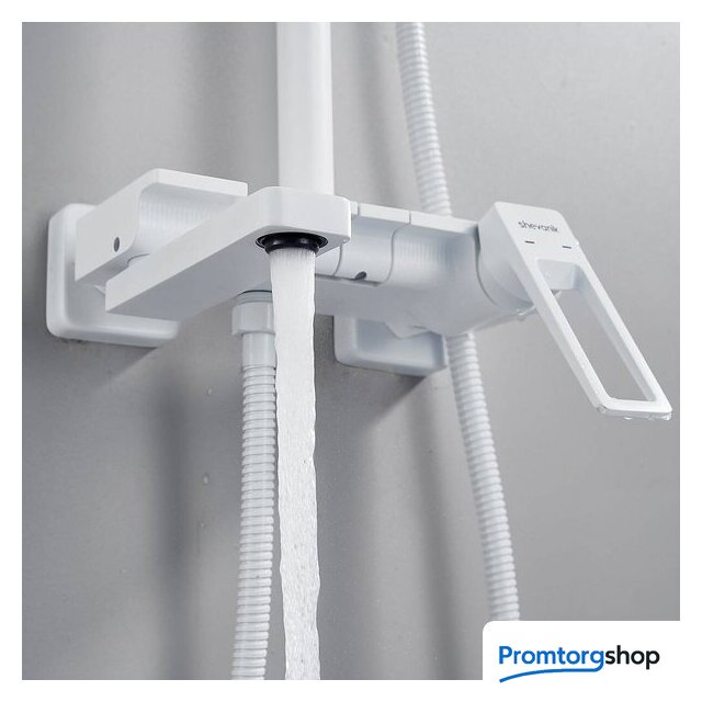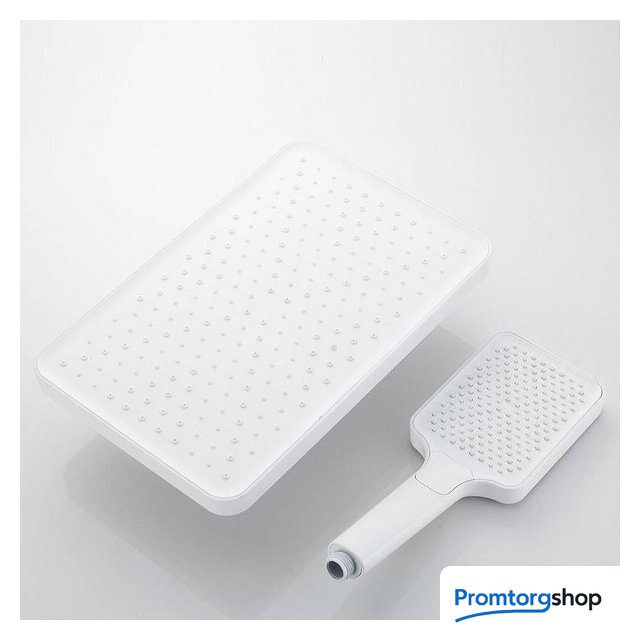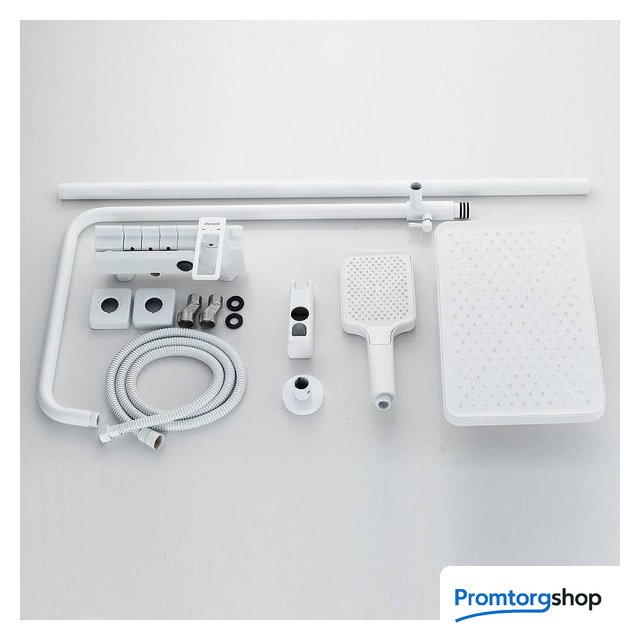 Комплектация | верхний душ, штанга, ручной душ (лейка), держатель лейки, шланг, смеситель, излив для ванны |