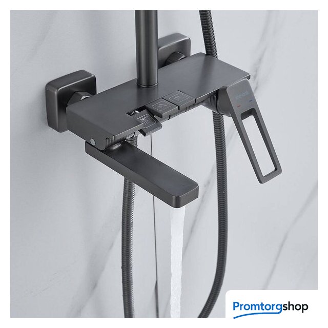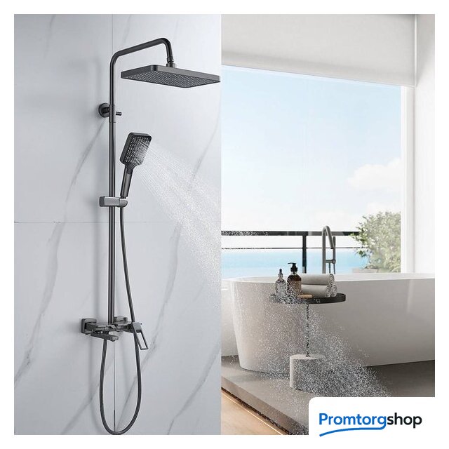 | Комплектация | верхний душ, штанга, ручной душ (лейка), держатель лейки, шланг, смеситель, излив для ванны |