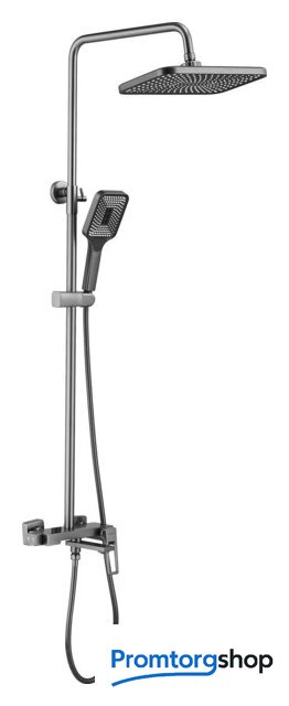 Комплектация | верхний душ, штанга, ручной душ (лейка), держатель лейки, шланг, смеситель, излив для ванны |