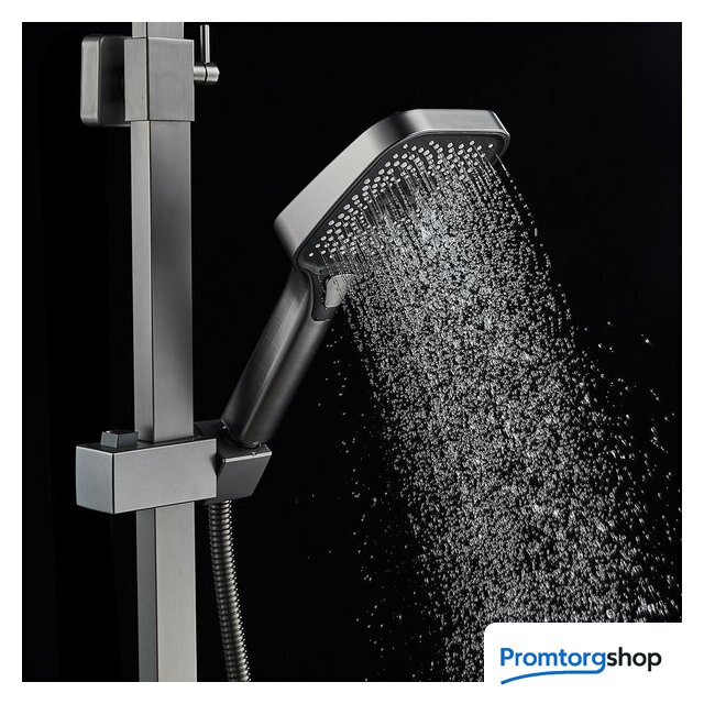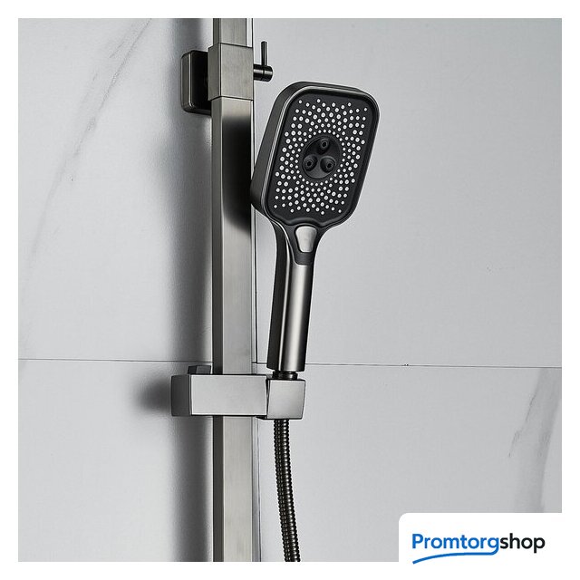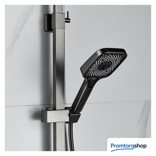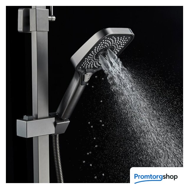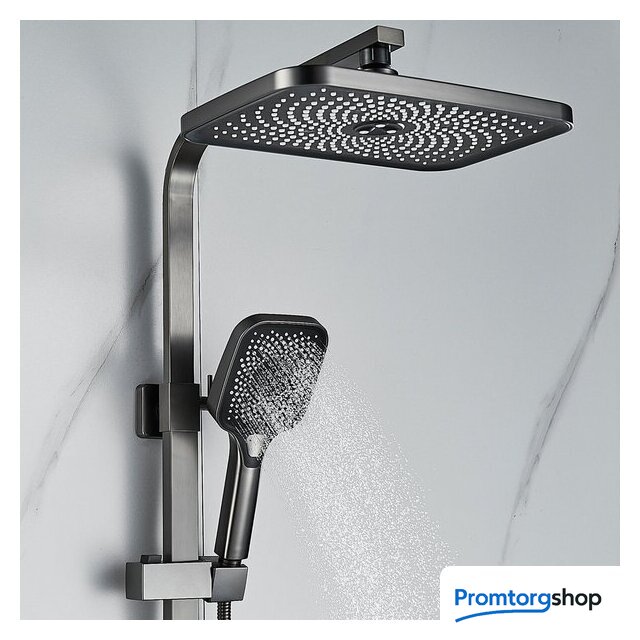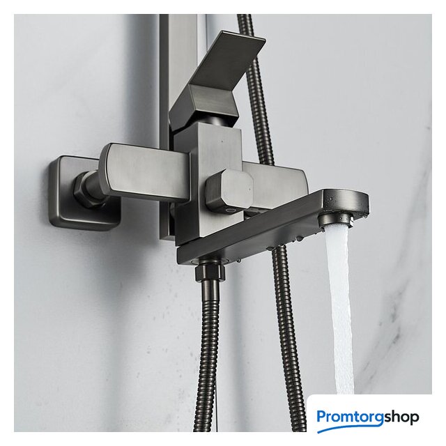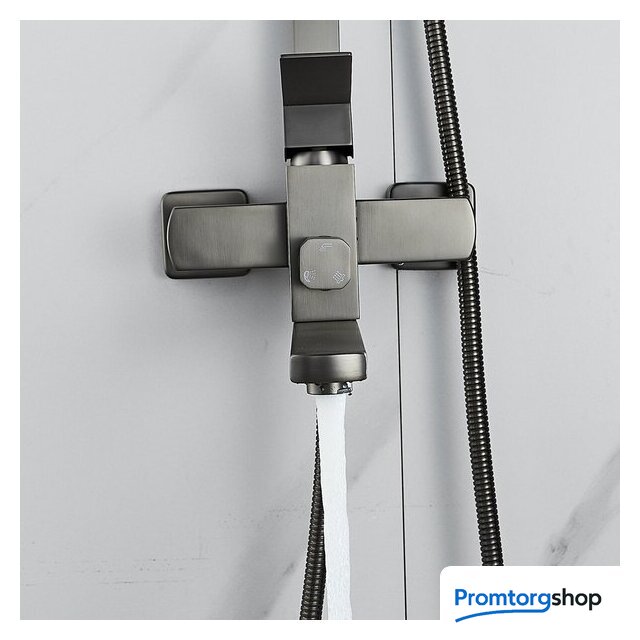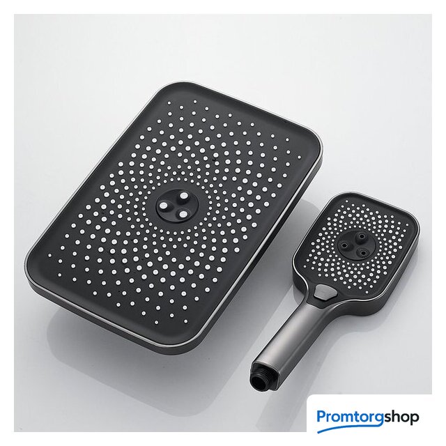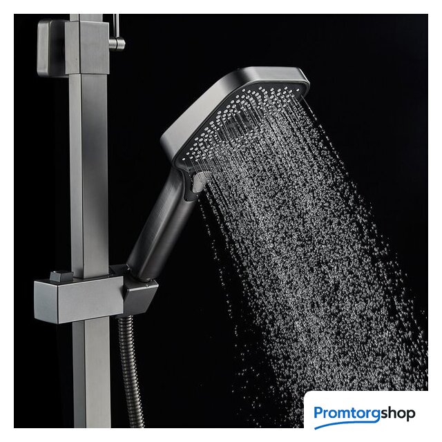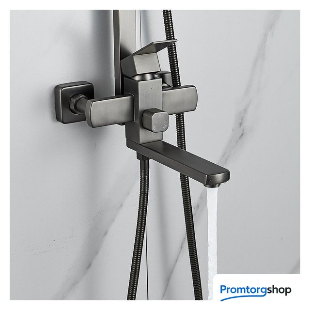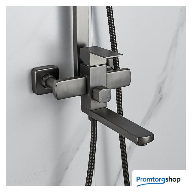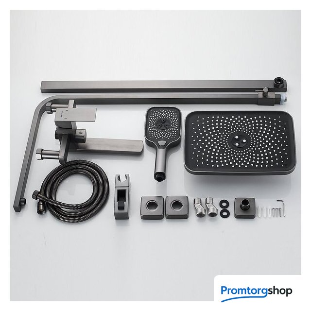 Комплектация | верхний душ, штанга, ручной душ (лейка), держатель лейки, шланг, смеситель, излив для ванны |