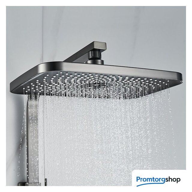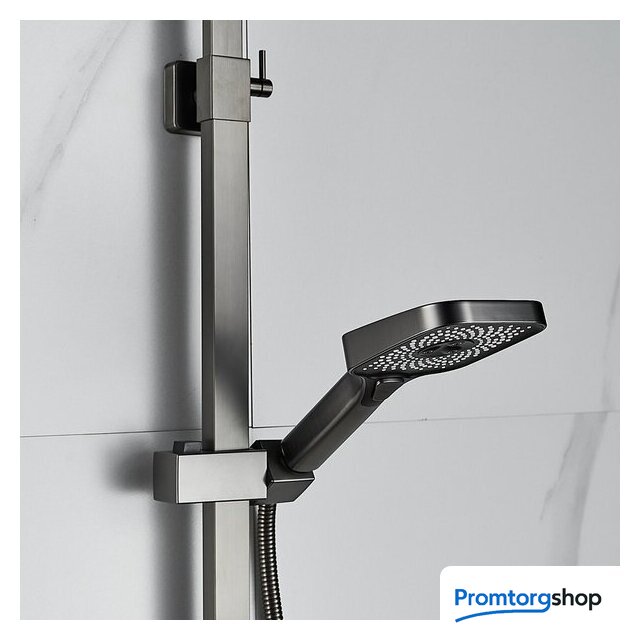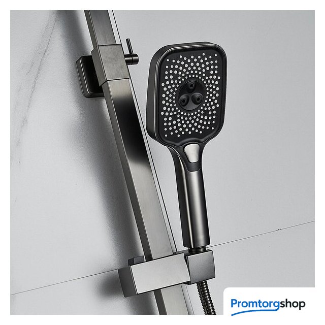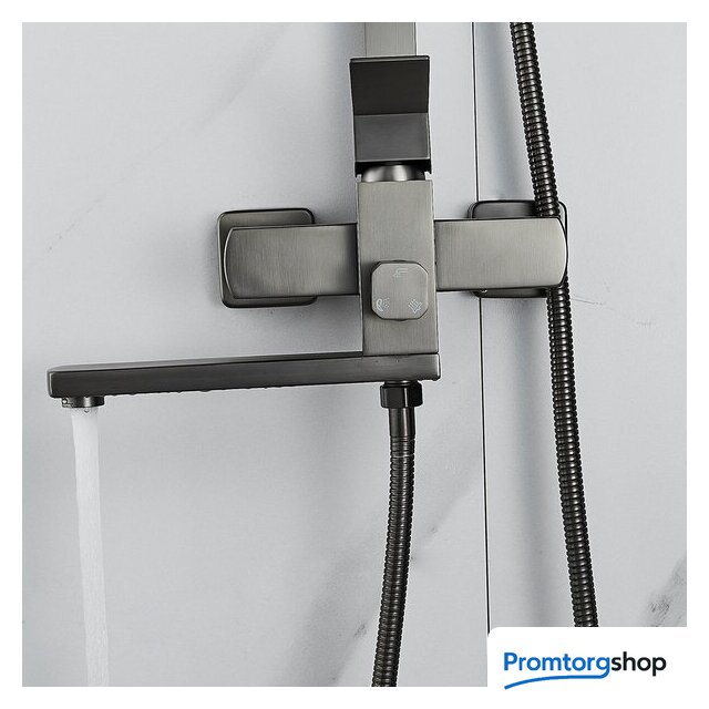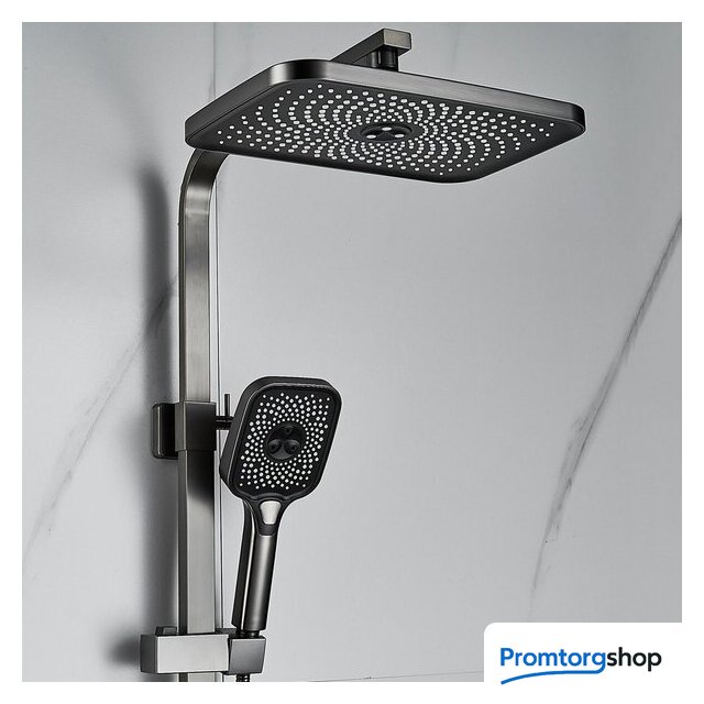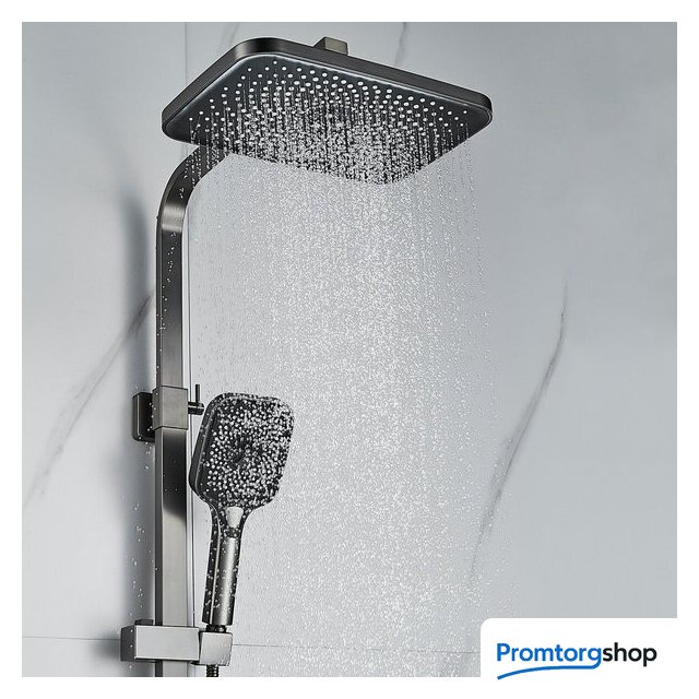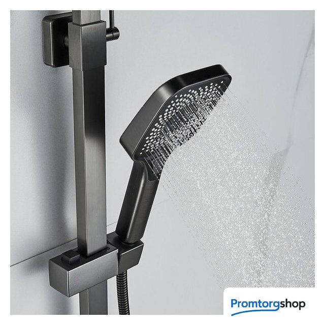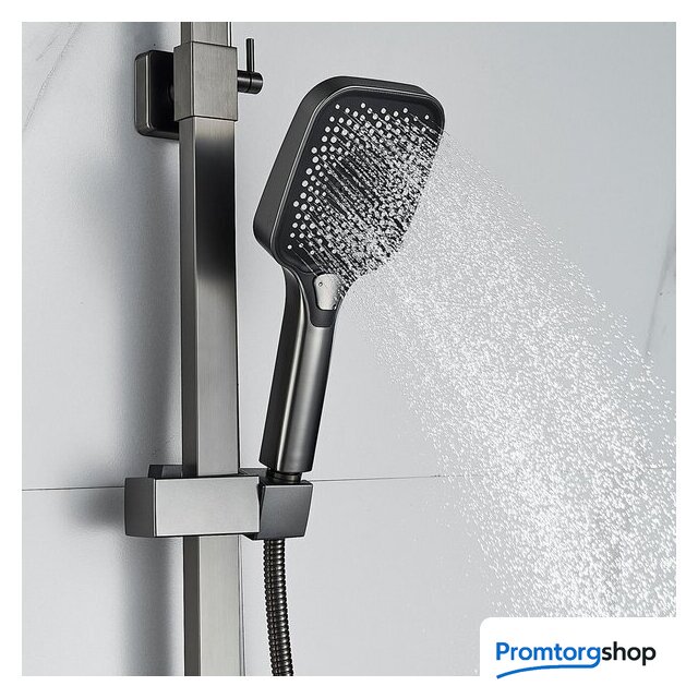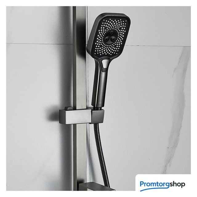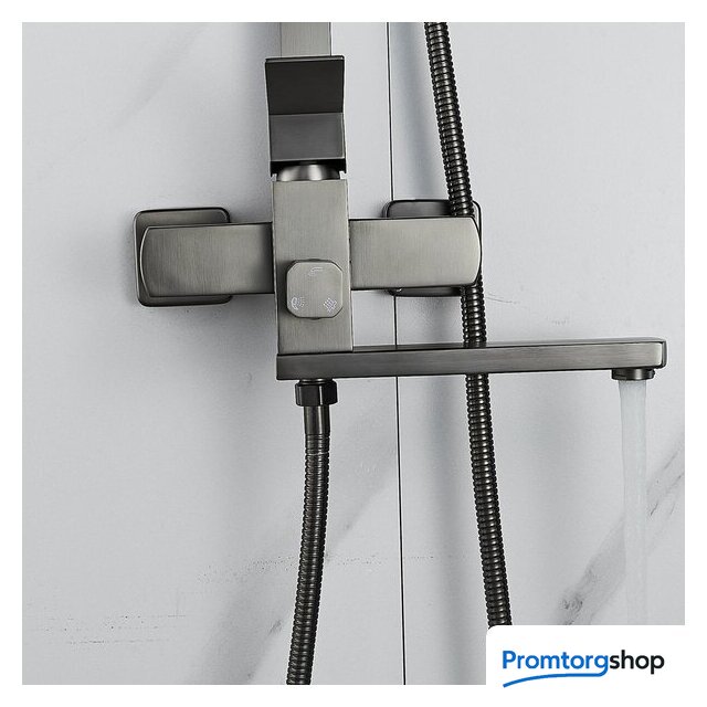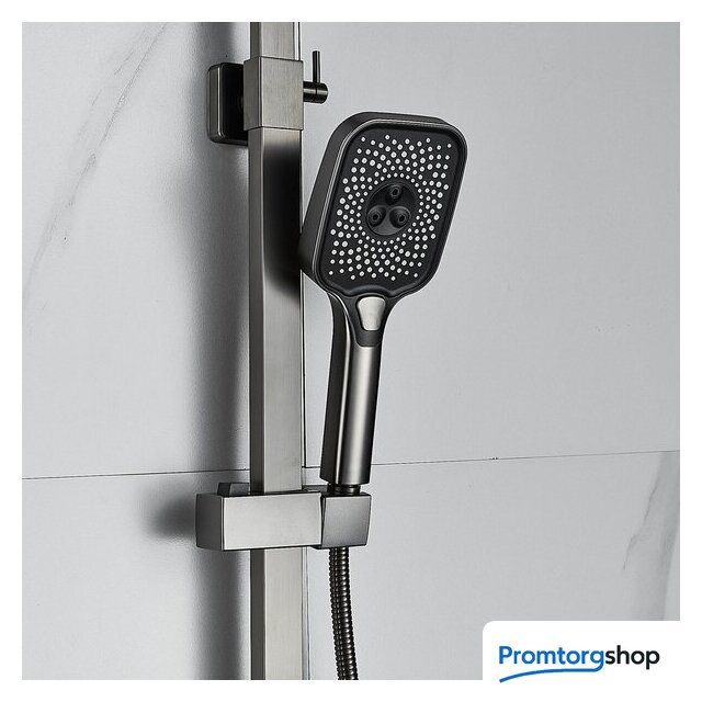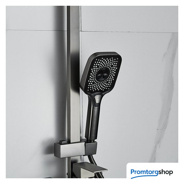 Комплектация | верхний душ, штанга, ручной душ (лейка), держатель лейки, шланг, смеситель, излив для ванны |