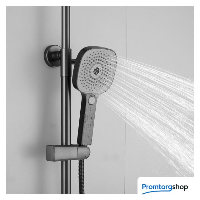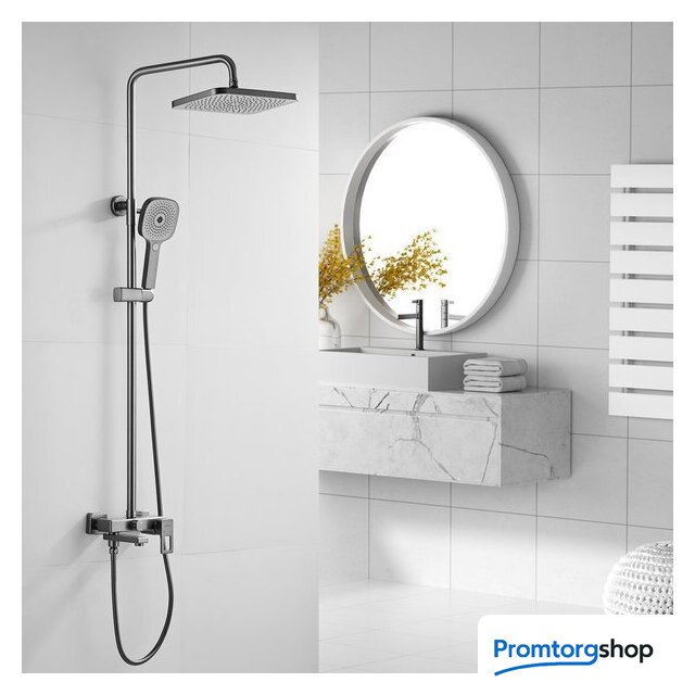 | Комплектация | верхний душ, штанга, ручной душ (лейка), держатель лейки, шланг, смеситель, излив для ванны |