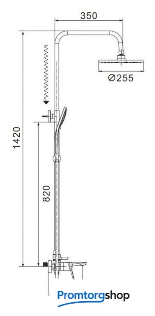 | Диаметр (ширина) верхнего душа | 255 мм |