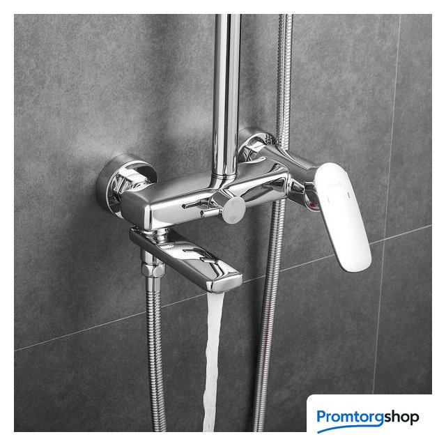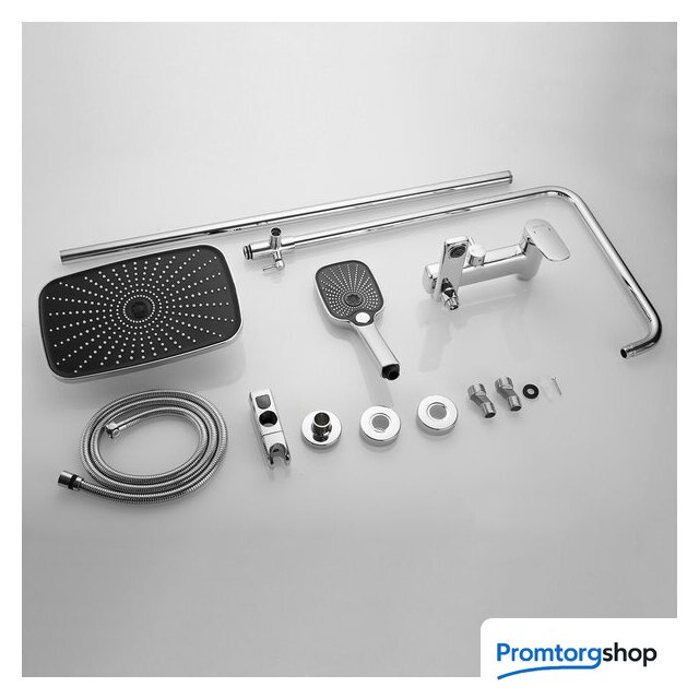 | Комплектация | верхний душ, штанга, ручной душ (лейка), держатель лейки, шланг, смеситель, излив для ванны |
