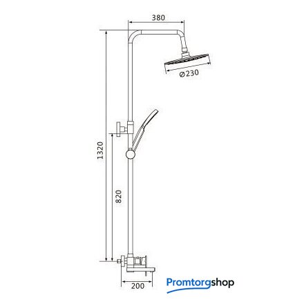 | Диаметр (ширина) верхнего душа | 230 мм |